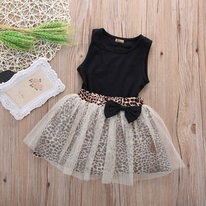 - New Hot Kids Baby Girl dress Sleeveless Round Collar Top Leopard Print Mesh Dress 2Pcs Suit Outfit Dresses